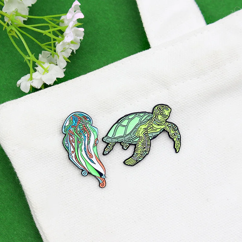 Эмалевая брошь с черепахами, морскими черепахами, Медузой, зеленая ...