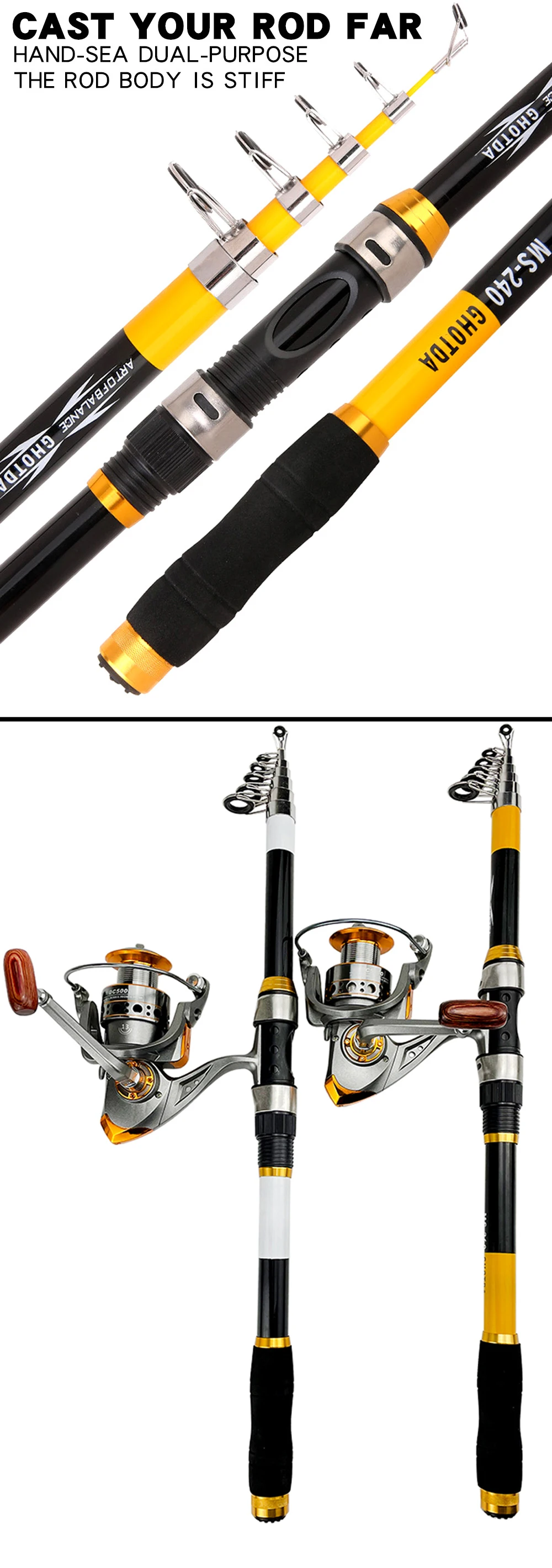Телескопическая удочка и Катушка для спиннинга 2,1-3,6 м