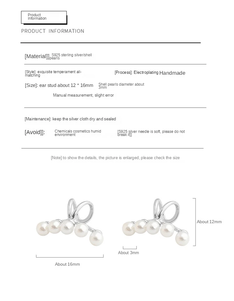 Серьги-клипсы женские из серебра 925 пробы с жемчугом