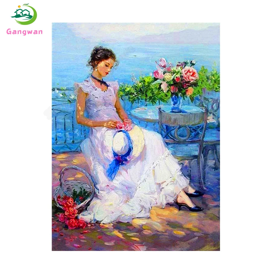 Картина из страз "сделай сам", элегантная женщина на балконе у моря, Алмазная мозаика, квадратная вышивка, хобби ручной работы
