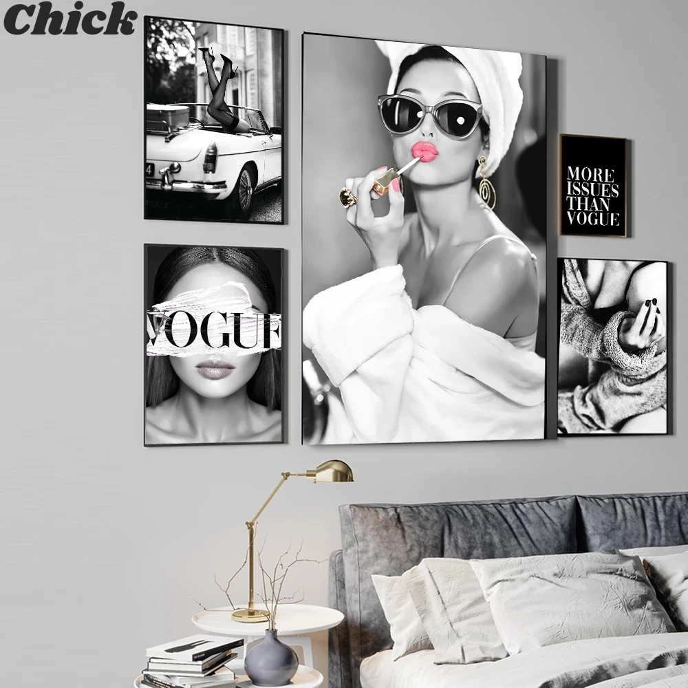 Модный плакат, настенный художественный принт, черно-белая Картина на холсте, модные женские картины для гостиной, винтажный Модный домашний декор