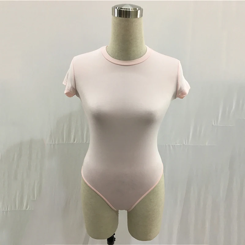 Женское боди с коротким рукавом, однотонное повседневное боди из полиэстера, Летний комбинезон