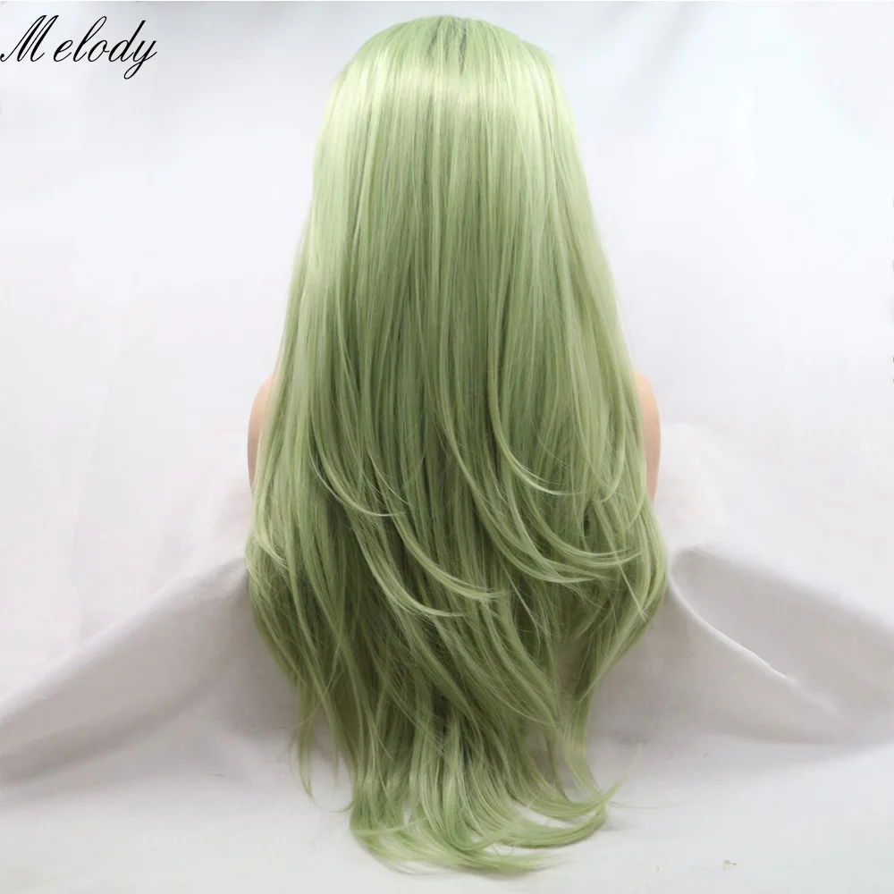 Парик для косплея на сетке спереди, длинные прямые волосы с черными корнями зеленого цвета для женщин, термостойкие волосы с короткой фронтальной сеткой