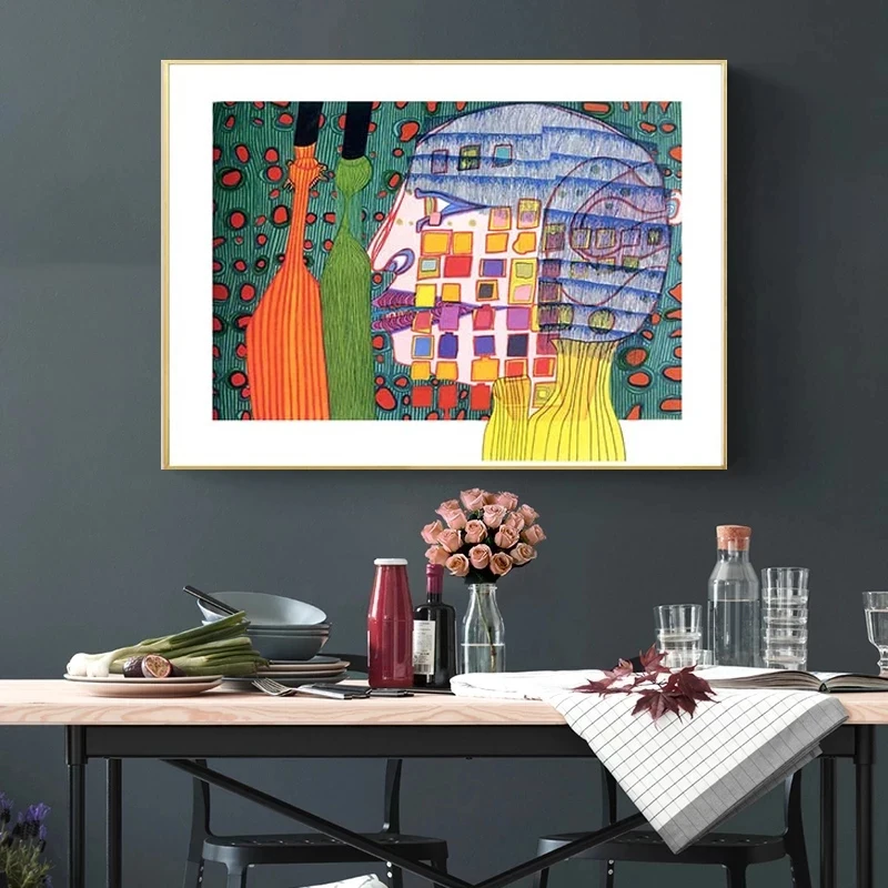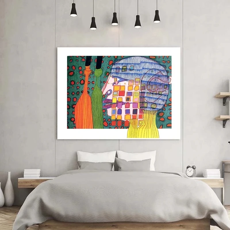 Картина на холсте с абстрактными персонажами в скандинавском стиле, фриденсрейх хундертвассер, настенный плакат, картина для домашнего декора