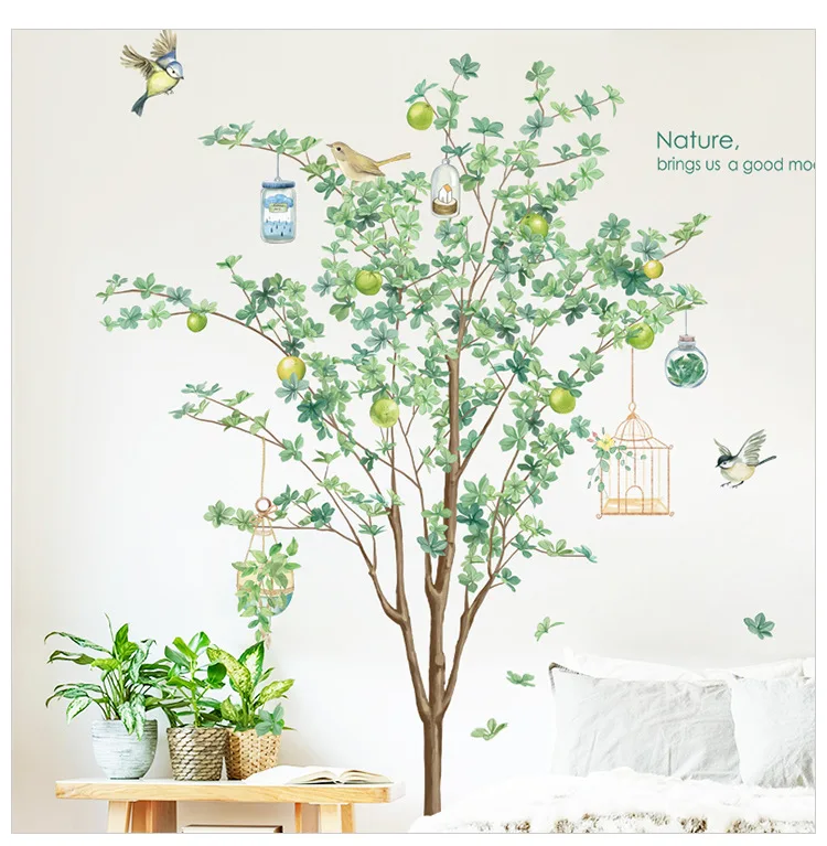 Наклейка на стену в скандинавском стиле с изображением лимона дерева для гостиной, спальни, дивана, телевизора, декор в виде птичьей клетки, Наклейки на стены из ПВХ для домашнего декора, наклейка