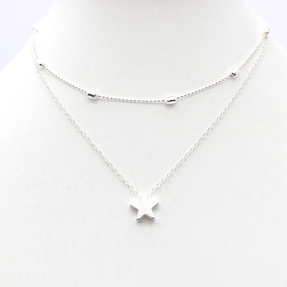Ожерелье с двумя чокер с несколькими слоями для женщин, простое многослойное колье-чокер с бусинами, минималистичное украшение