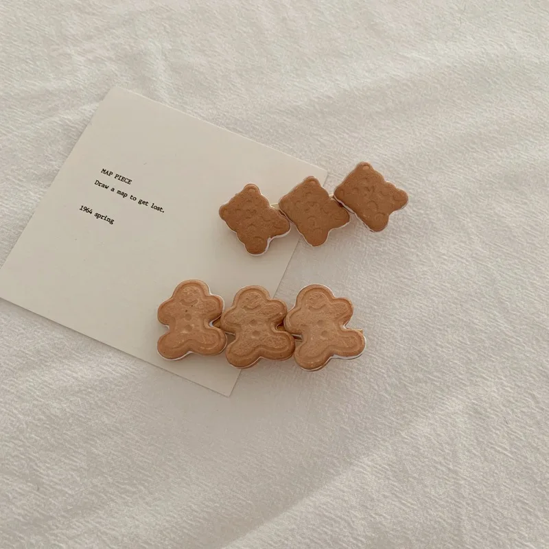 Забавная заколка для волос с изображением печенья, милая заколка для волос в форме сердца, заколка с боковыми зажимами, мягкие аксессуары для волос для девочек, украшения для головы
