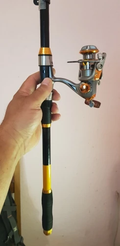 Он тонкий, но если он не сломается, идеально, катушка очень красивая, но слишком маленькая даже для этой удочки. Я надеюсь наслаждаться этим