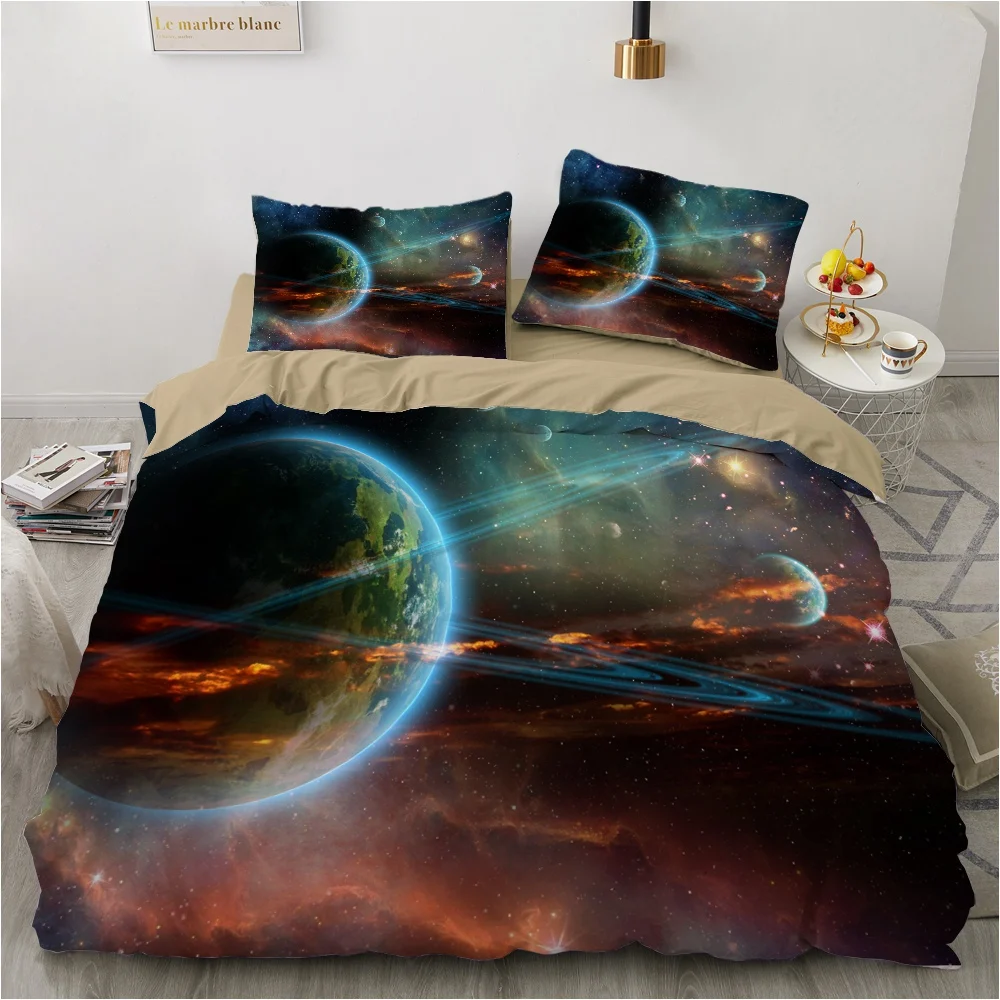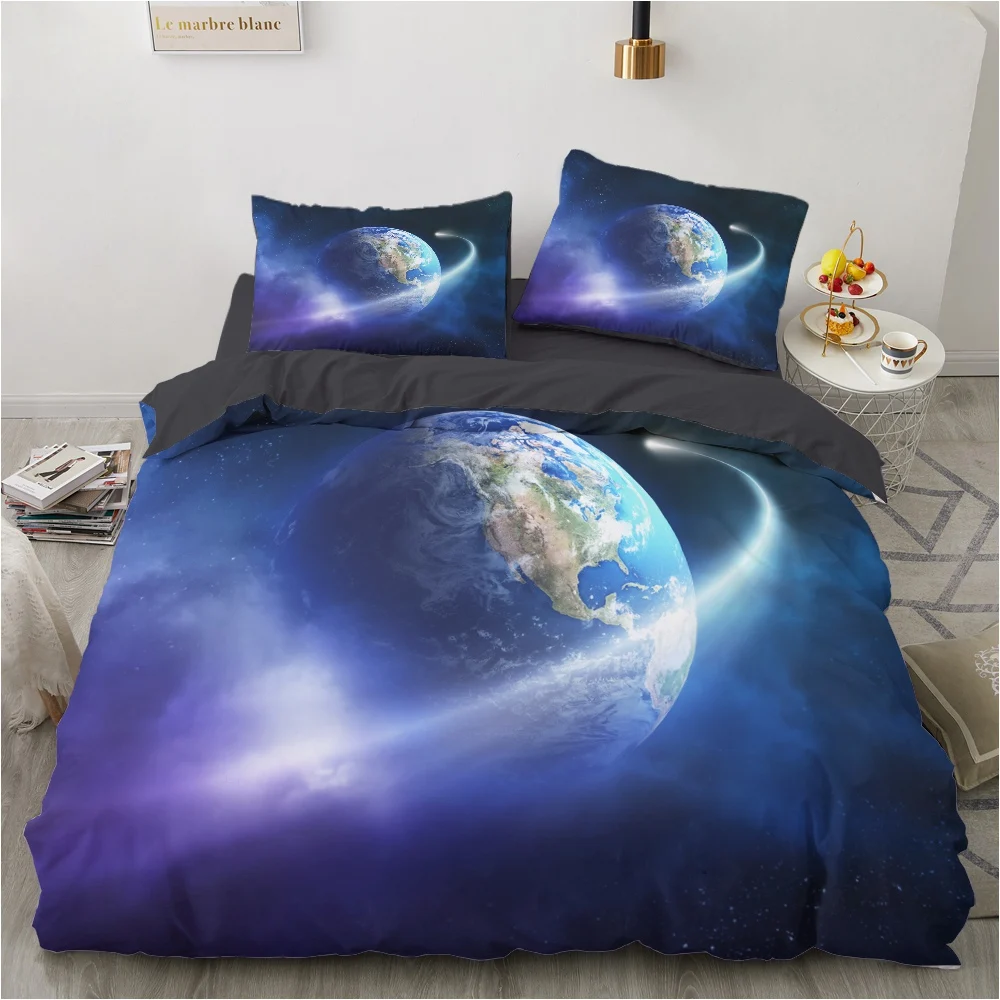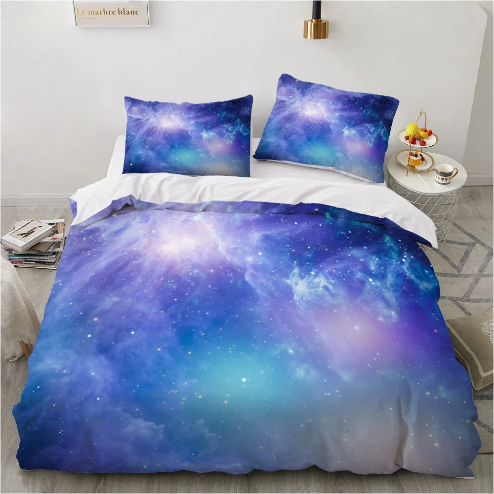 Комплект постельного белья с пододеяльником 3D HD, Комплект постельного белья, размер KingQueenDouble, комплект пододеяльника с принтом, Комплект постельного белья из 23 шт., Комплект постельного белья с фиолетовой галактикой