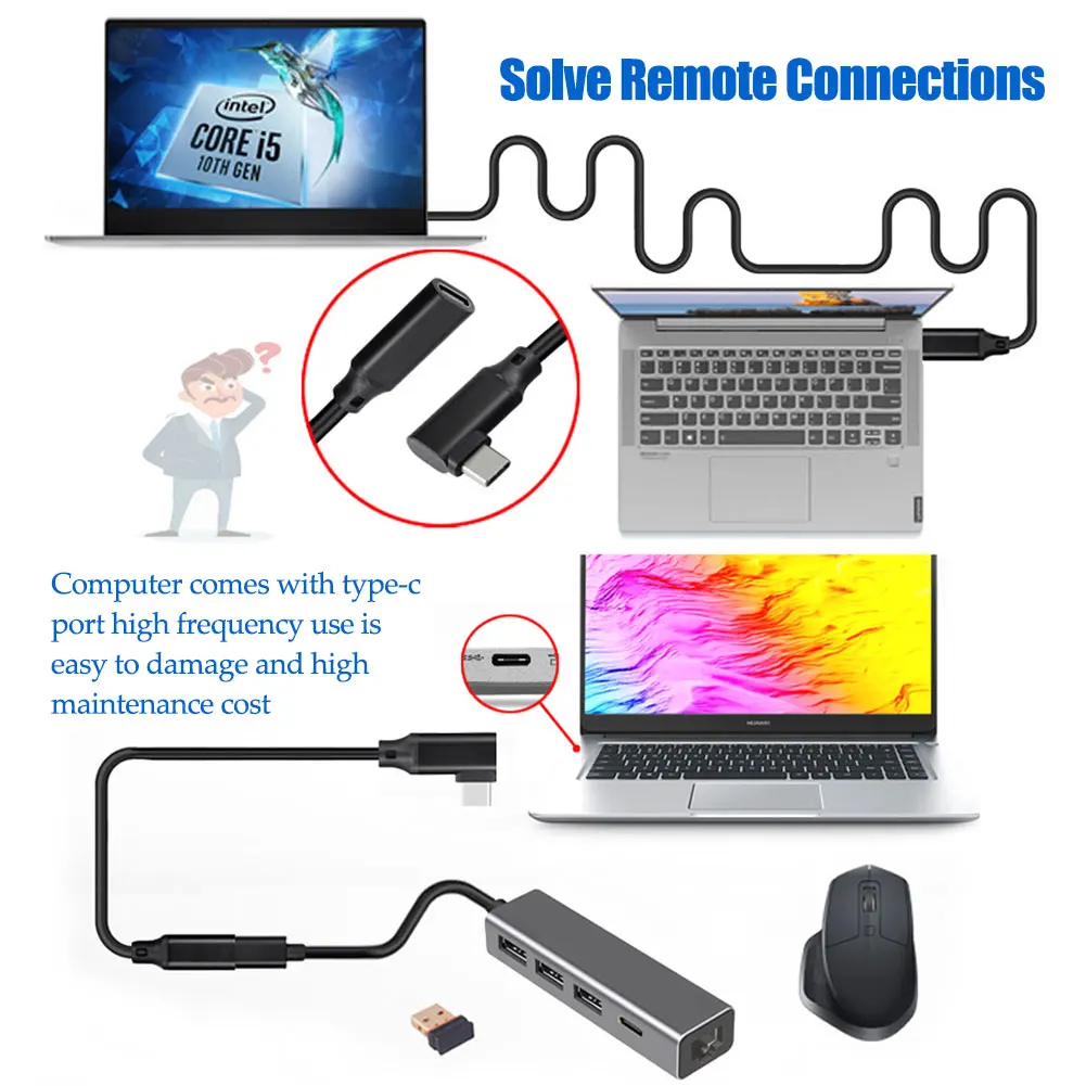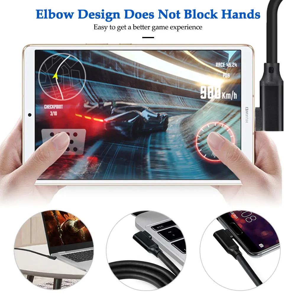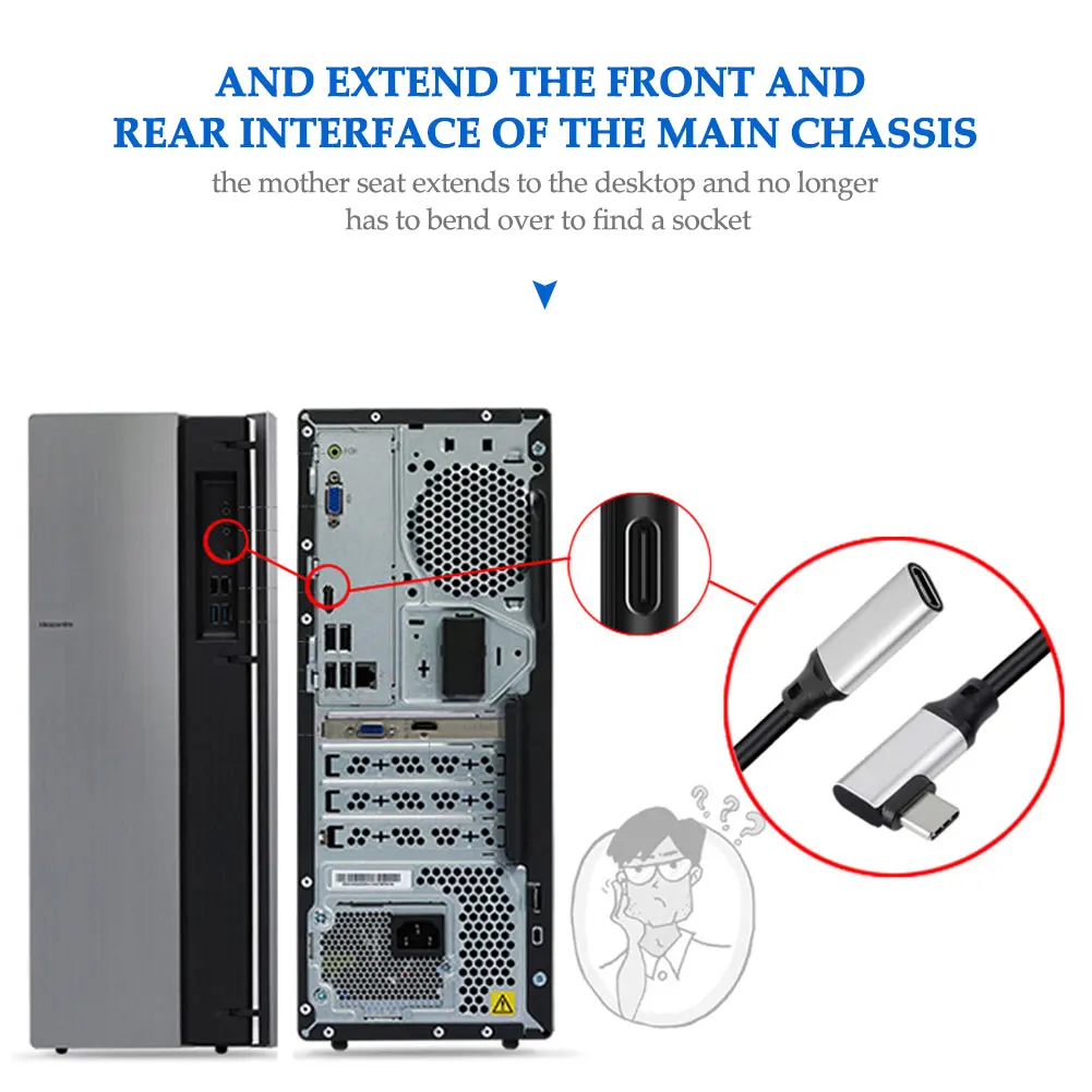 Удлинительный кабель 4K HD Type-C, 5 А, PD, 100 Вт, изгиб под прямым углом 90 градусов, с, штекер-гнездо