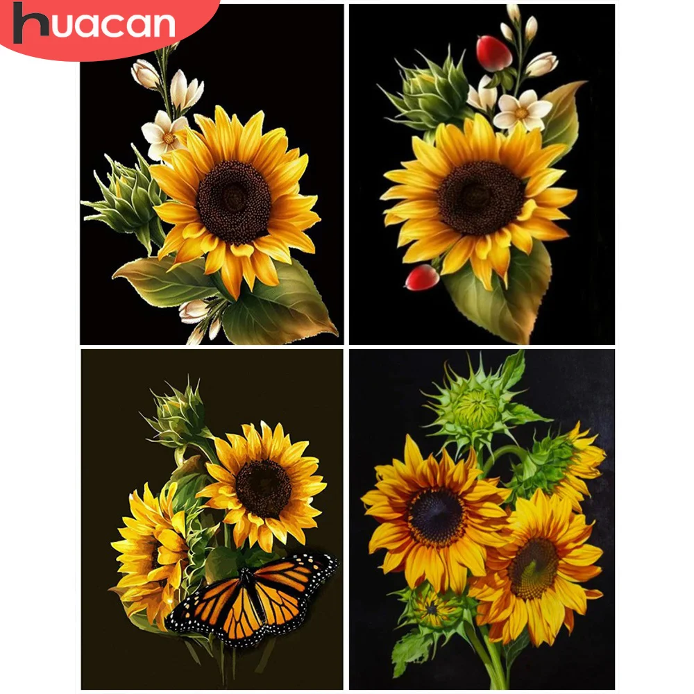 HUACAN картина маслом подсолнуха по номерам настенные художественные картины по номерам Цветок для взрослых украшение дома 40х50см