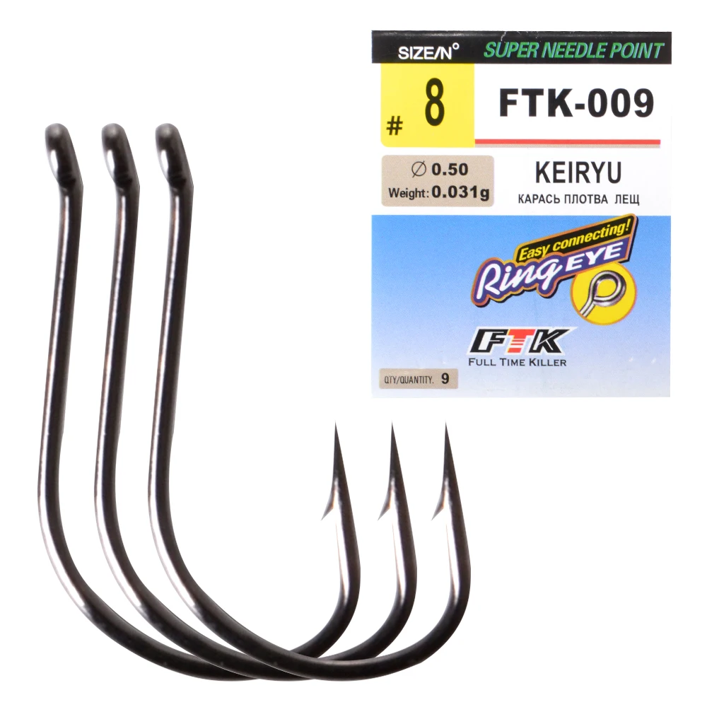 FTK-009 рыболовный крючок из углеродистой стали с кольцом, с бородкой, одиночные рыболовные фидерные крючки для ловли карпа с глазами