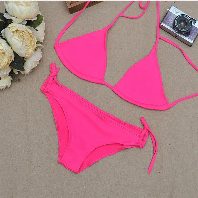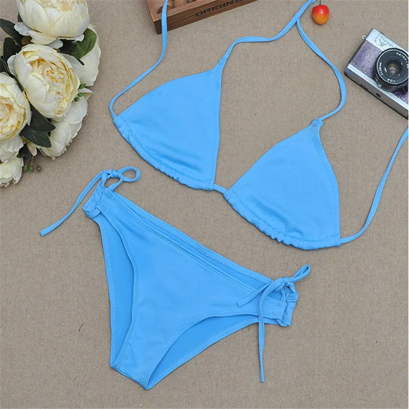 Сексуальный купальник-бикини, Женский однотонный купальник, комплек...