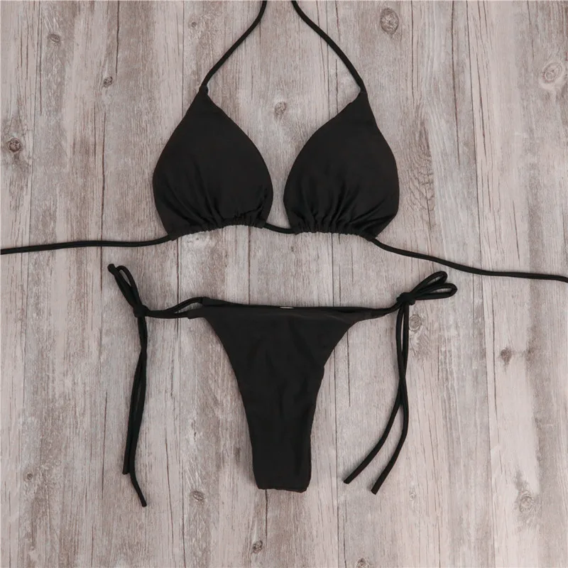 Сексуальные бразильские стринги, бикини, Женский однотонный купальн...