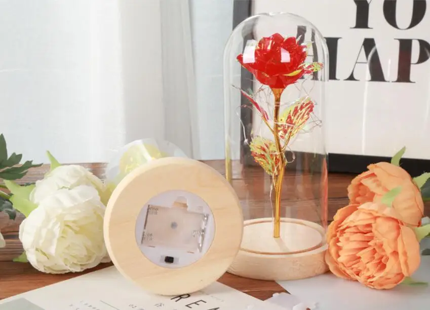 Искусственный вечная роза светодиодный светильник Красота с рисунком из мультфильма Красавица и Чудовище Роза в Стекло, подарки на Рождество, домашний декор для мамочек День святого Валентина