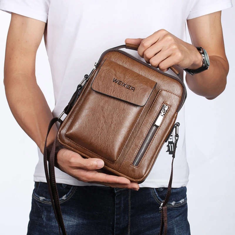 Сумка через плечо мужская, из искусственной кожи, винтажная, 2021