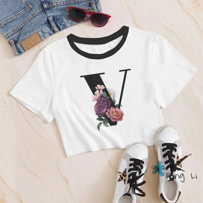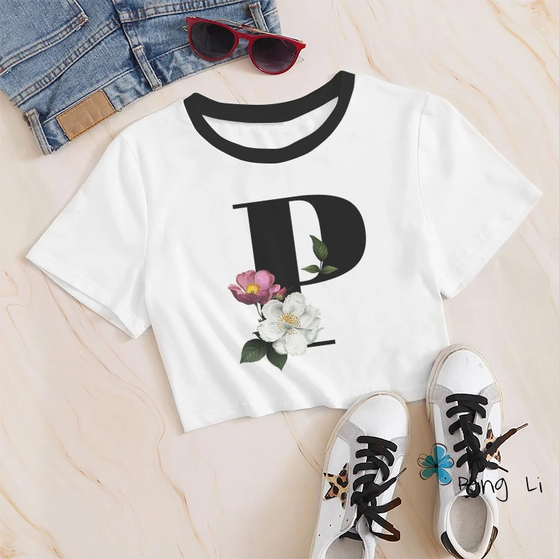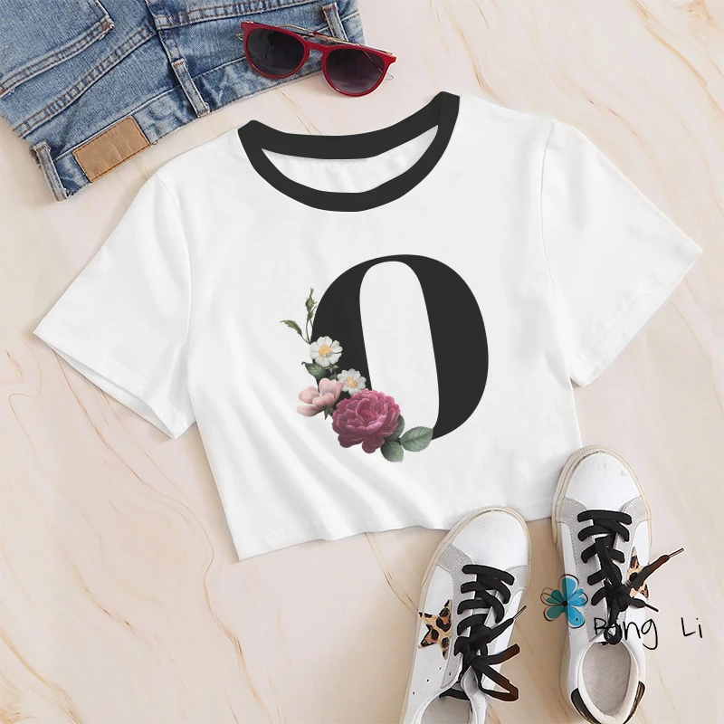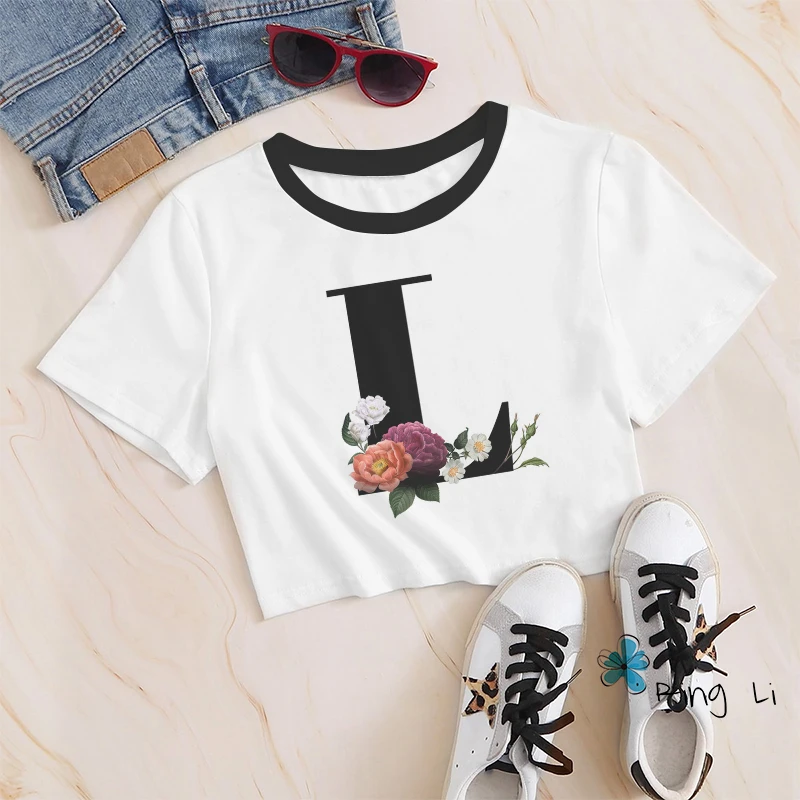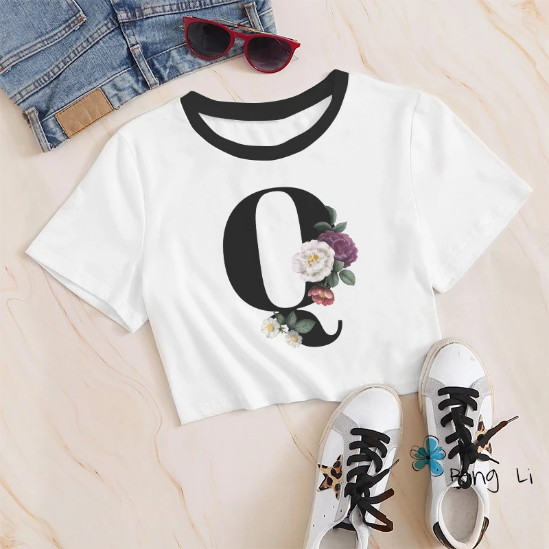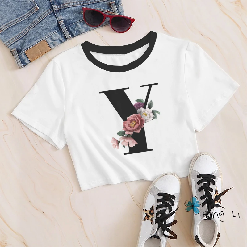 Женские футболки, укороченные топы с буквами алфавита от A до Z, летний Y2k корсет, сексуальная короткая майка, уличная одежда в Корейском стиле, модная 26 букв алфавита