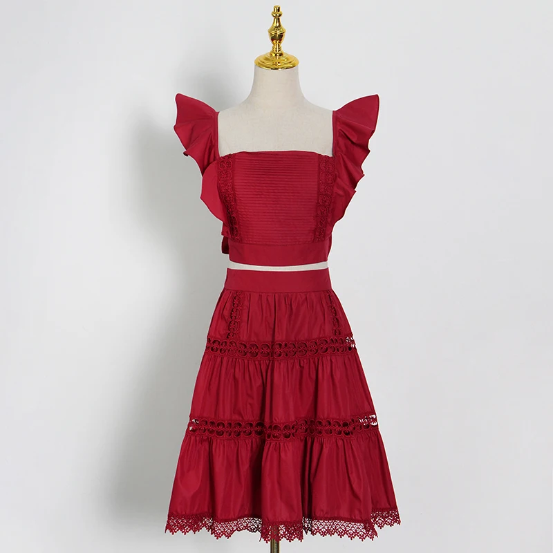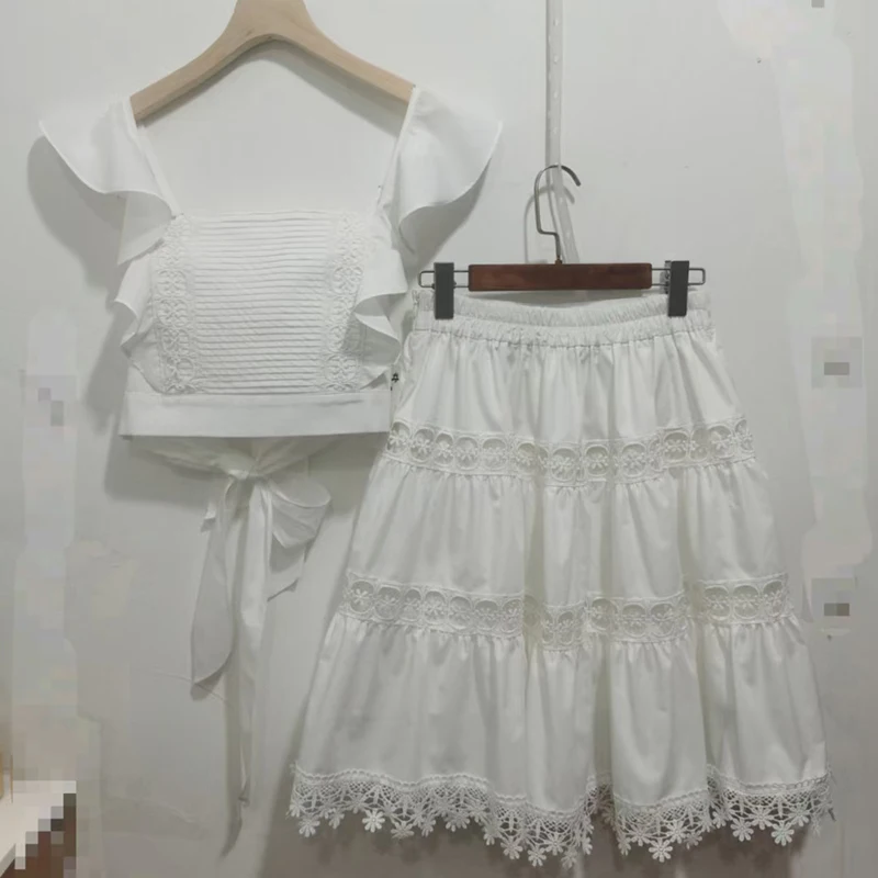 Женский лоскутный костюм VGH, комплект из двух предметов, майка с квадратным вырезом и трапециевидная юбка с высокой талией, лето 2021