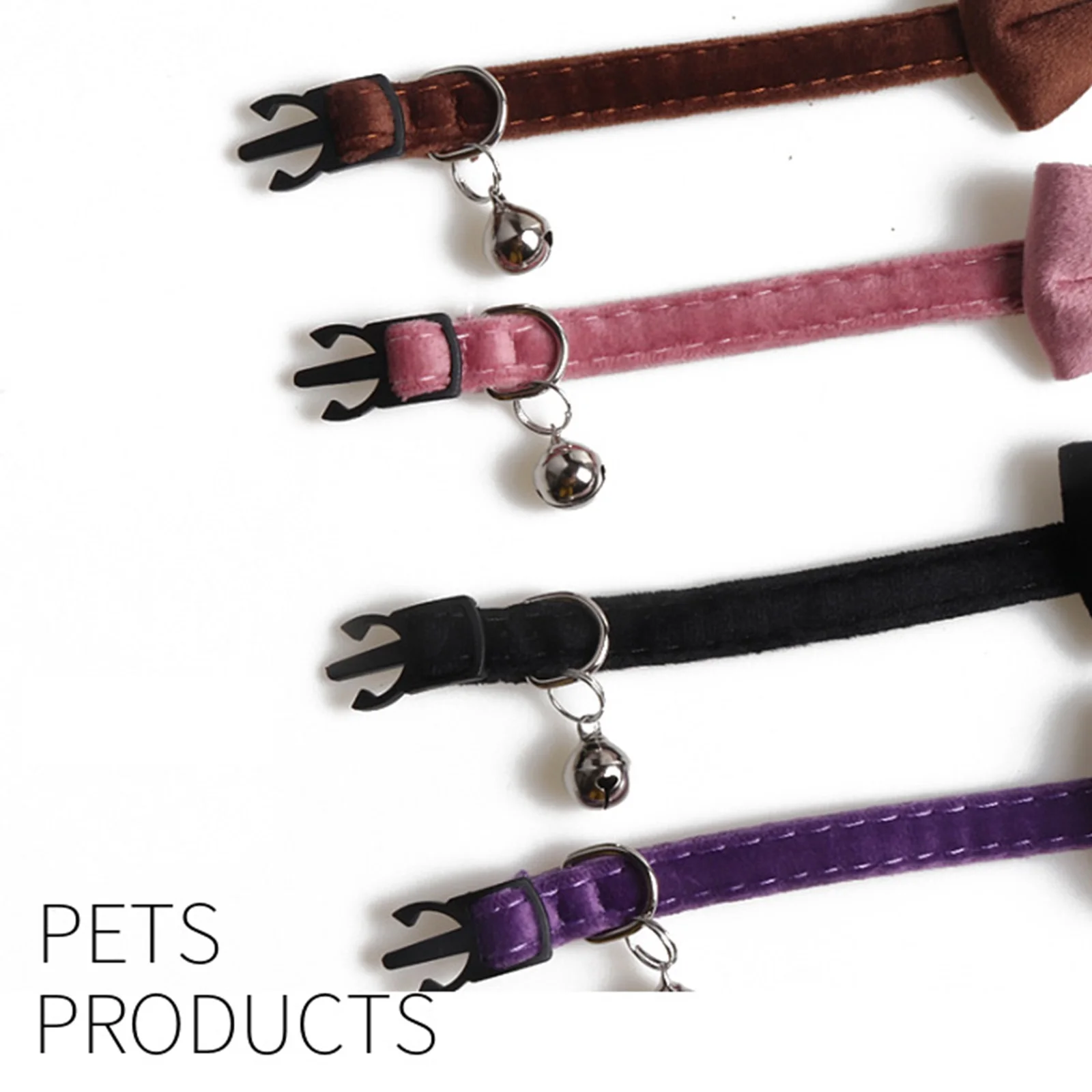 Мягкий бархатный ошейник для кошек, однотонный ожерелье с бантом и колокольчиком, регулируемая застежка, галстук-бабочка для кошек, аксессуары для домашних животных