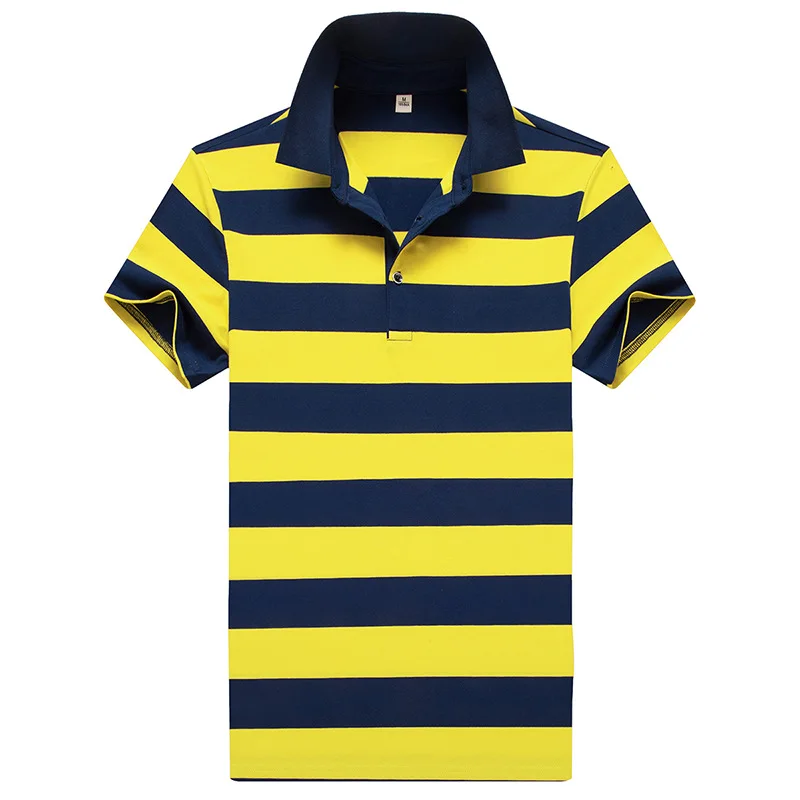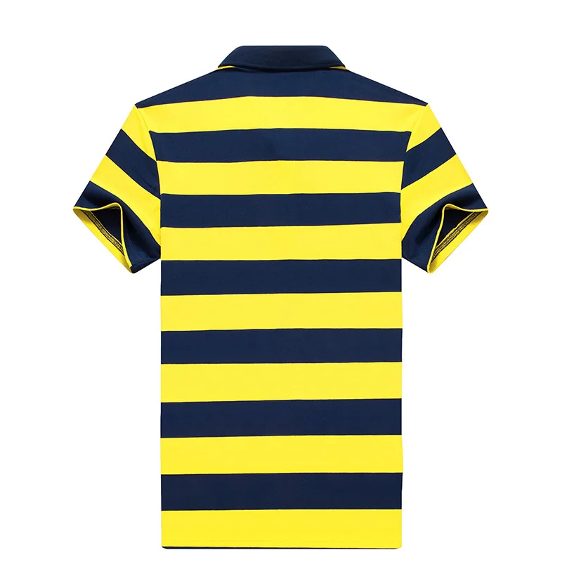 Мужская классическая полосатая рубашка поло из хлопка с коротким ру...