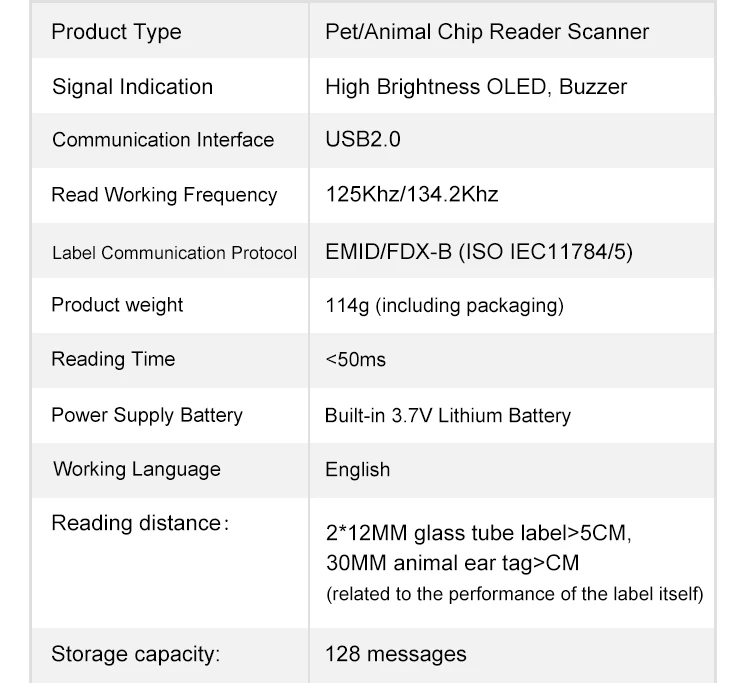 RFID-сканер для животных, 134,2 кГц, FDX-B, ISO1178411785