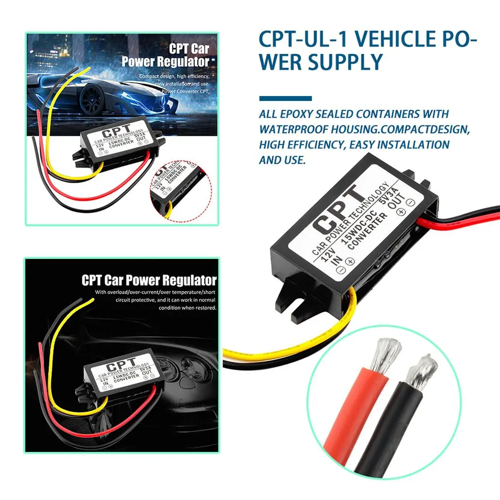15 Вт CPT-UL-1 DC конвертер регулятор 12 В до 5 В пост 3A Автомобил...