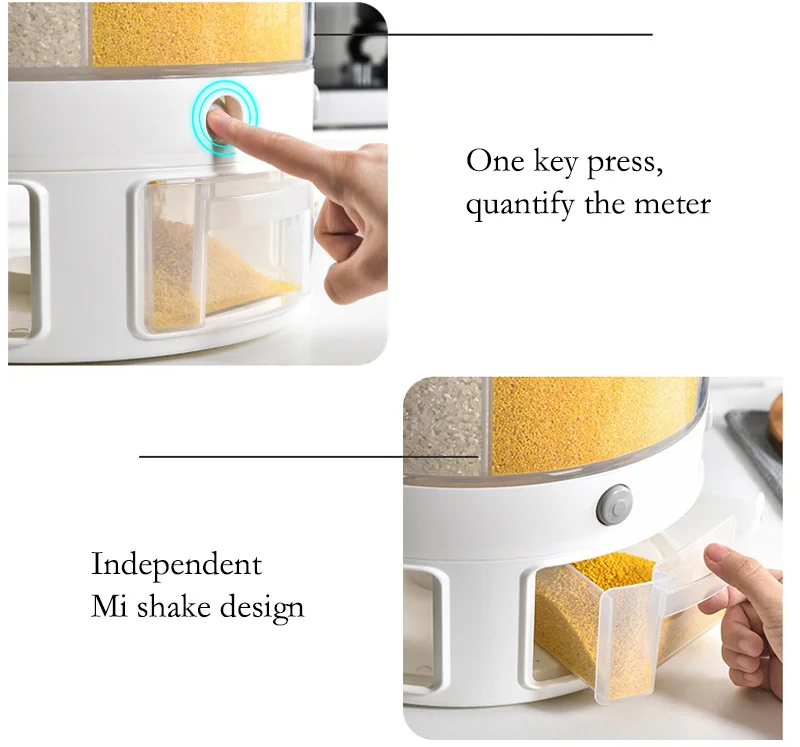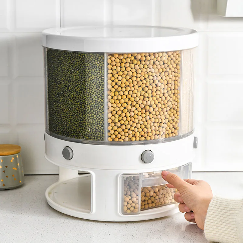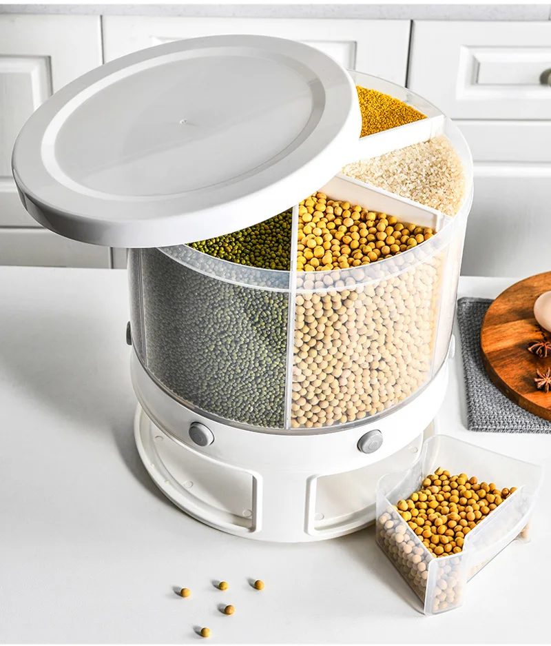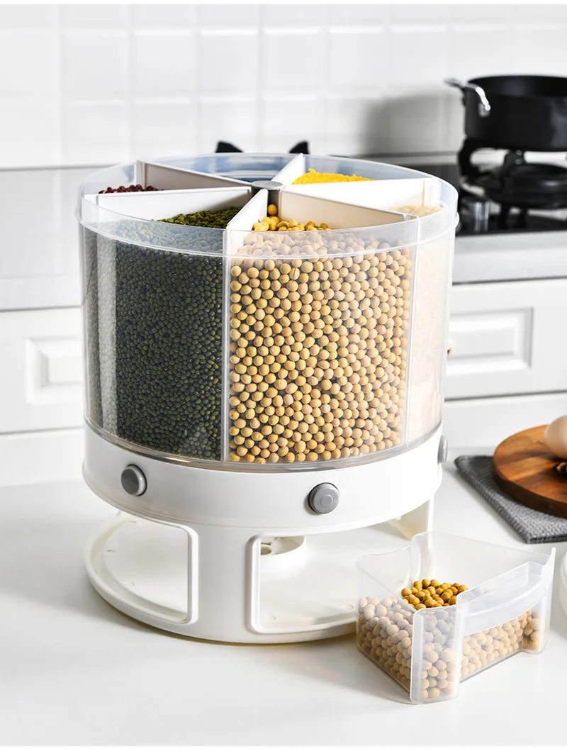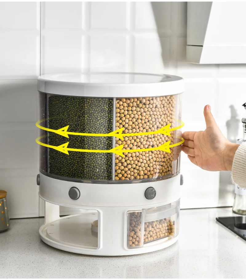 Вращающийся контейнер для хранения зерна, ведро для риса, диспенсер для зерен, контейнеры для хранения продуктов, кухонный Органайзер, герметичный, влагостойкий