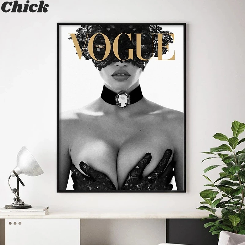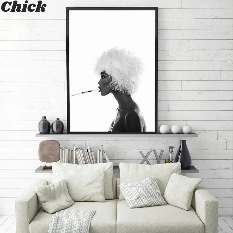 Модный плакат, настенный художественный принт, черно-белая Картина ...