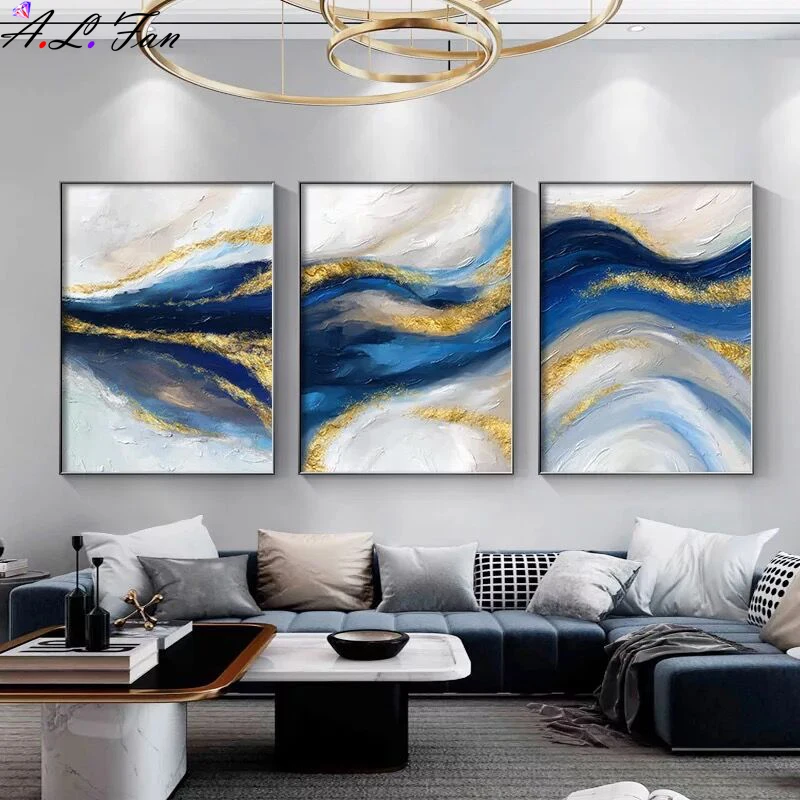 Абстрактная Картина на холсте с изображением синего золота, современное искусство, плакат и печать, Настенная картина, современный Декор для дома, гостиной