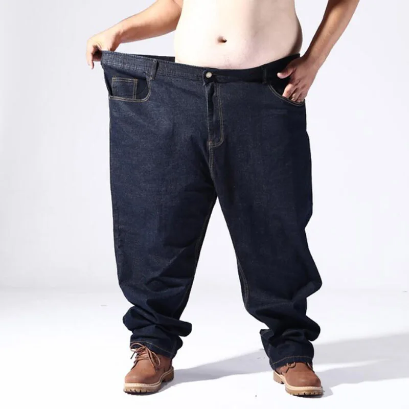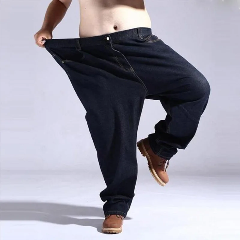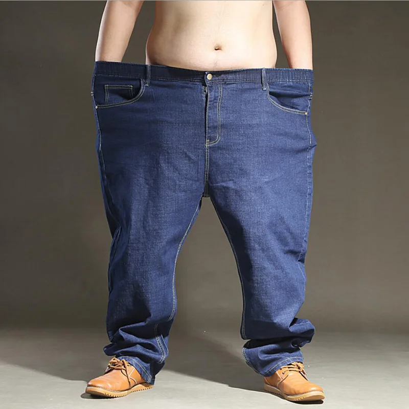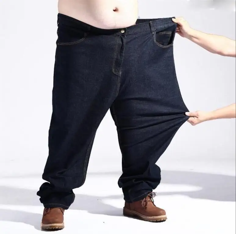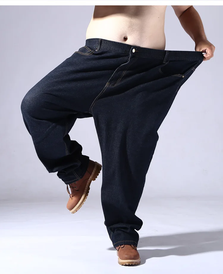 Осень-зима джинсы для мужчин; Классические темно-синие джинсы брюки с высокой талией растягиваются прямого свободного размера плюс 49 52 55 54 60 брюки