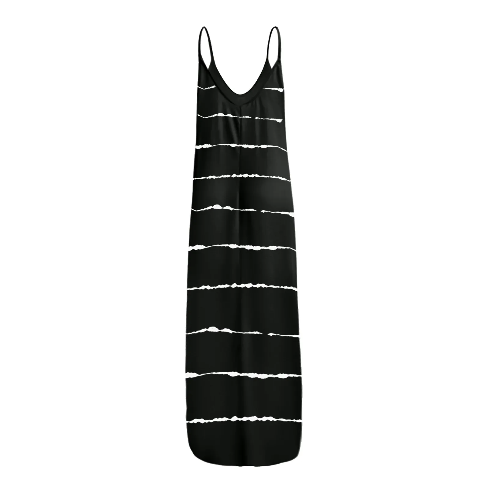 Платье женское длинное с принтом в полоску, модная повседневная одежда свободного покроя без рукавов, с карманами на бретелях, в богемном стиле, лето 2012