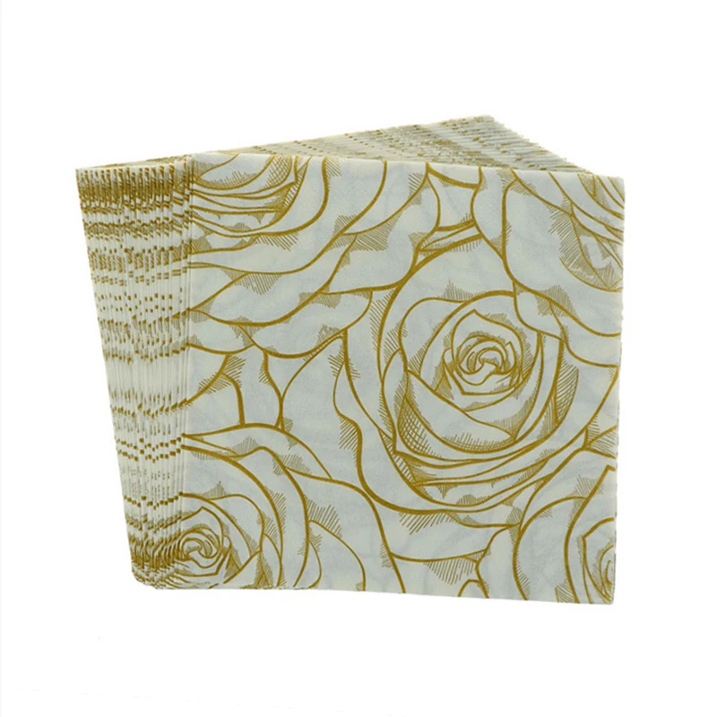 20шт.пакет бумажные салфетки с золотым и розовым рисунком, бумажные салфетки для рождества, свадьбы, украшения вечерние, Настольные принадлежности