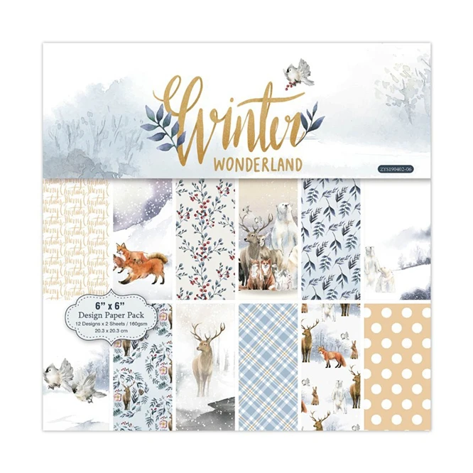 Бумажная бумага с узором в виде страны чудес зимой, 24 листа, 6 дюй...