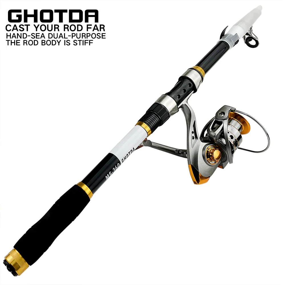 Карбоновая портативная телескопическая удочка GHOTDA, спиннинг из в...