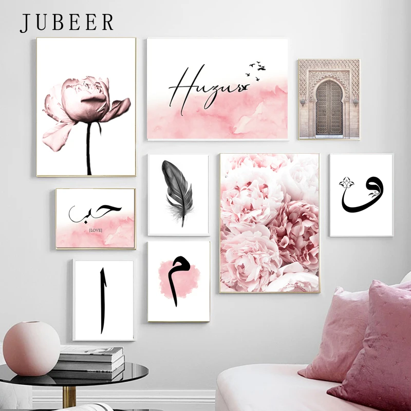 Постер на холсте с изображением розовых цветов старые ворота, ислам...