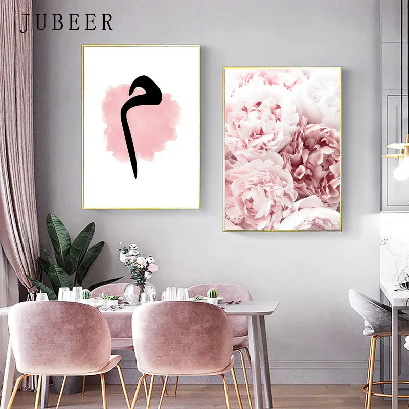 Настенные постеры в скандинавском стиле с цветами, Розовые настенны...