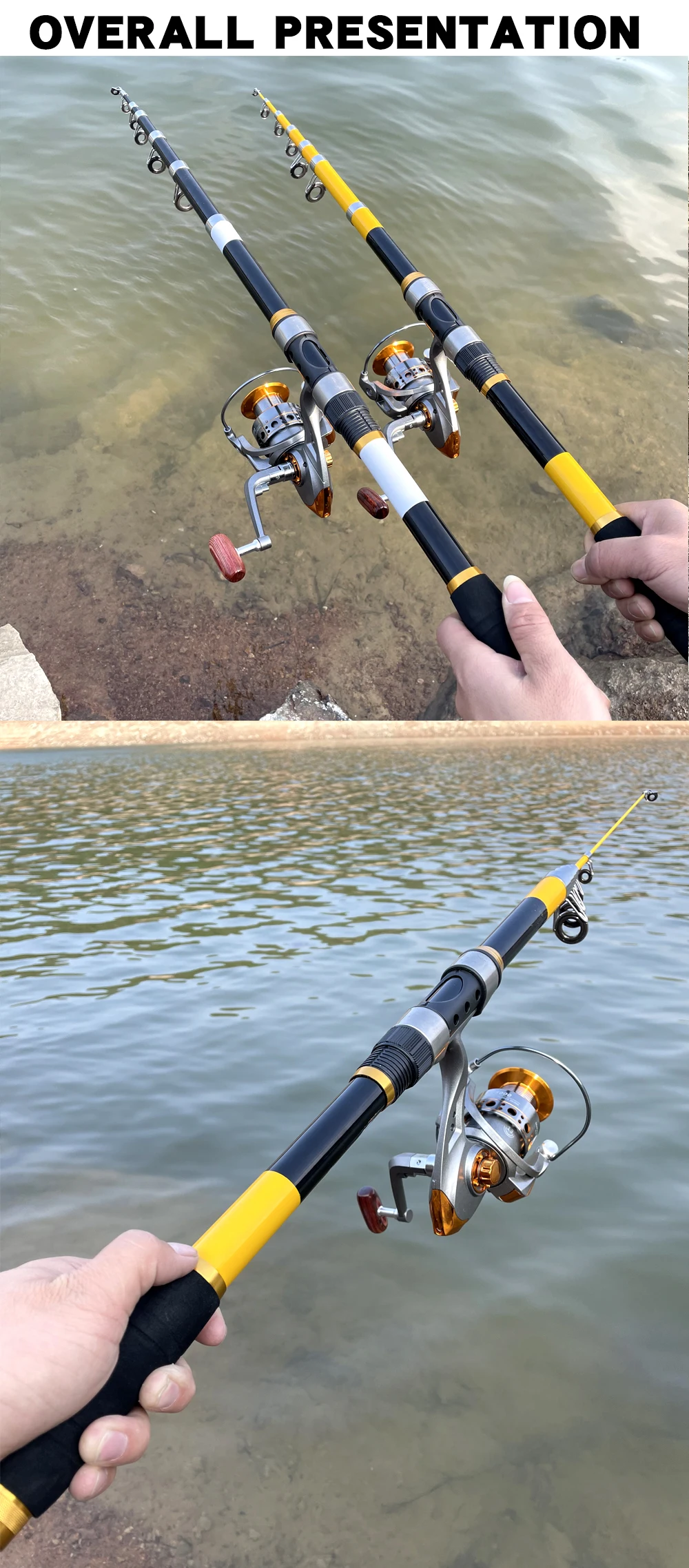 Набор удилищ и катушек для спиннинга, телескопическая углеродная Уд...