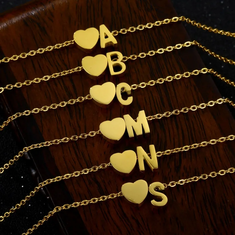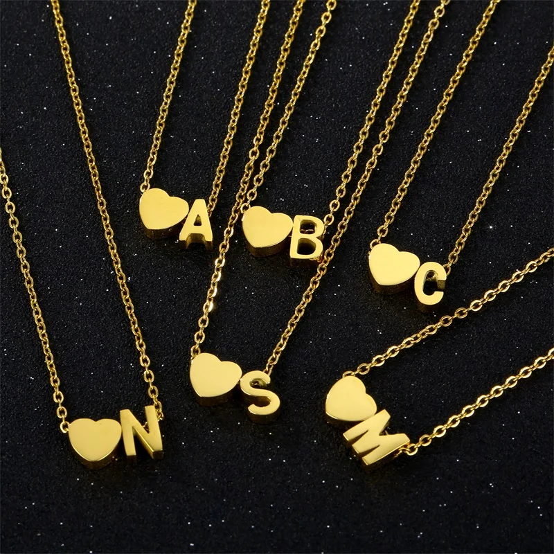 Ожерелье из нержавеющей стали под заказ с 26 буквами и золотыми инициалами, Женская цепочка, чокер сделай сам, сердце для женщин, бижутерия с именем под заказ