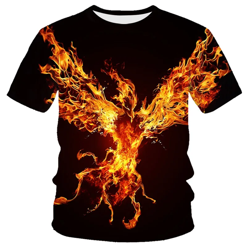 Летняя крутая Мужская футболка с 3D-принтом орла и пламени и феникс...
