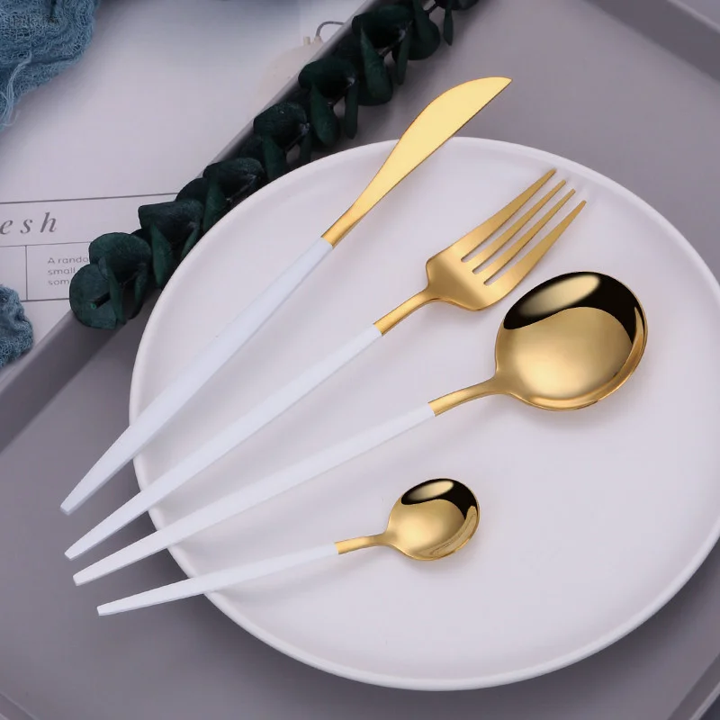 Набор столовых приборов из нержавеющей стали, золотистого цвета, столовые приборы в западном стиле, вилки, ножи, ложки