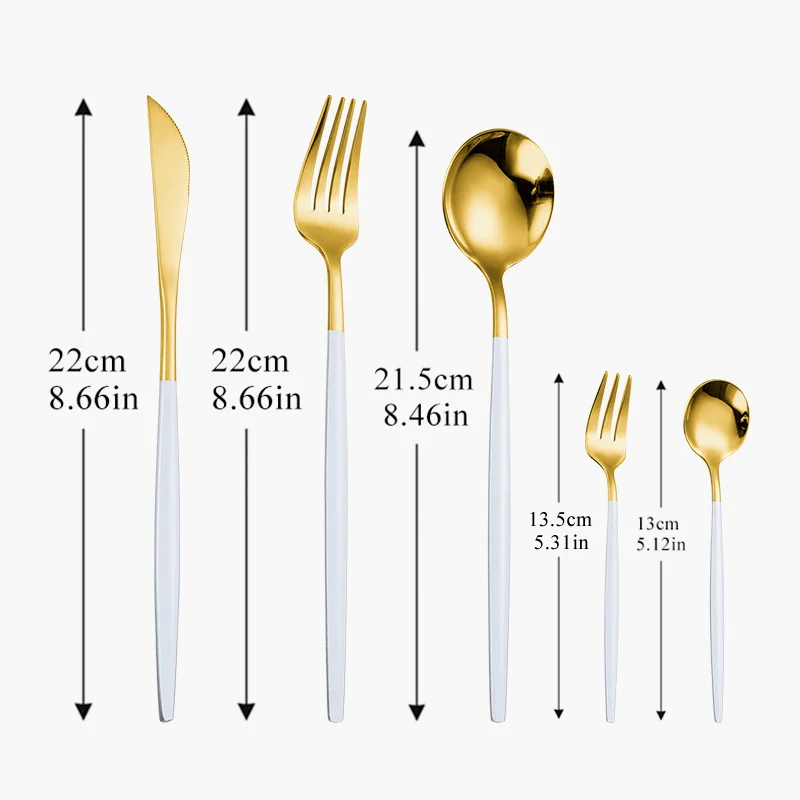 Размер: ужинНож(22 см, 8,66 дюйма)Вилка (22 см, 8,66 дюйма)Ложка (21,5 см, 8,46 дюйма)