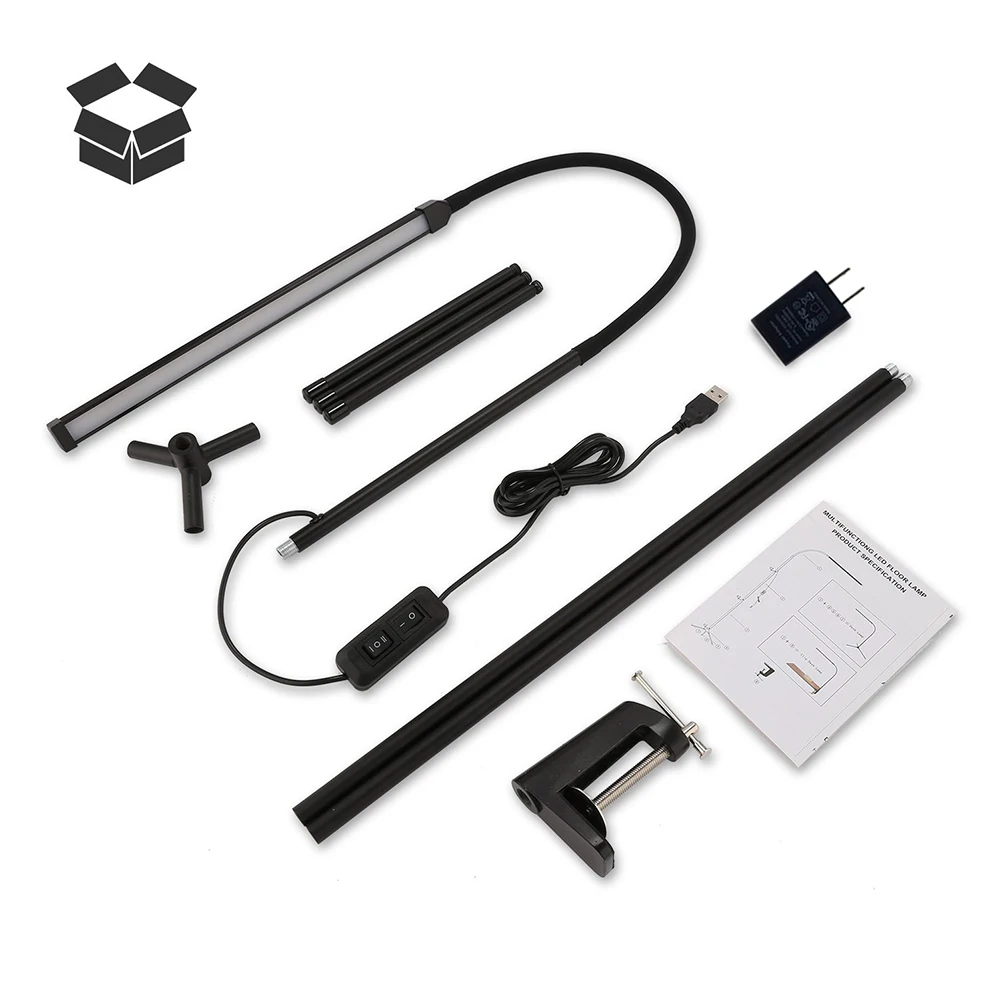 Стиль: Современный Цвет корпуса: черный Материал: алюминий + ПВХ Функция: регулируемая Цвет светильник: теплый белый/белый Индекс цветопередачи: 85 Люмен: 1000 лм Источник светильник светодиодный 2835SMD, 72 шт. Тип: 36 белый, 36 теплый белый Ток: 1A-2A Рабочее напряжение: 5 В/AC110-240V Мощность: 8 Вт Интерфейс: USB