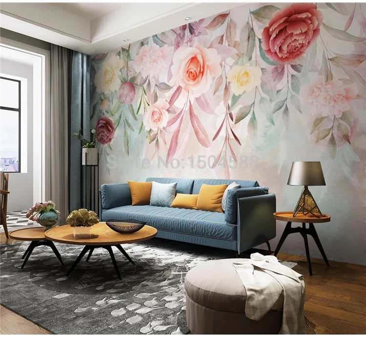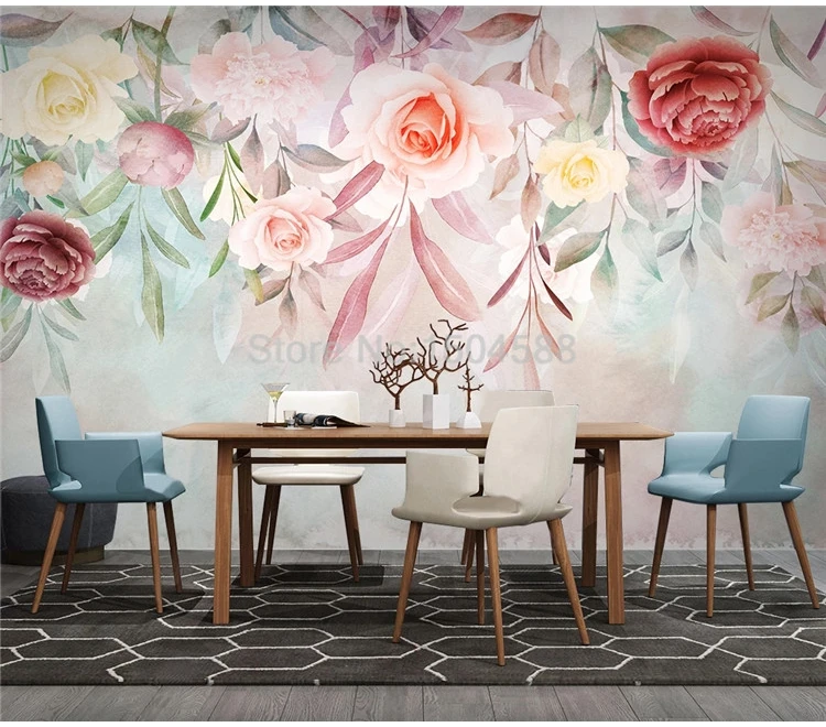Настенные 3D обои любого размера на заказ, ручная роспись, Акварельные Цветы, пасторальный стиль, настенная живопись для гостиной, ТВ, спальни