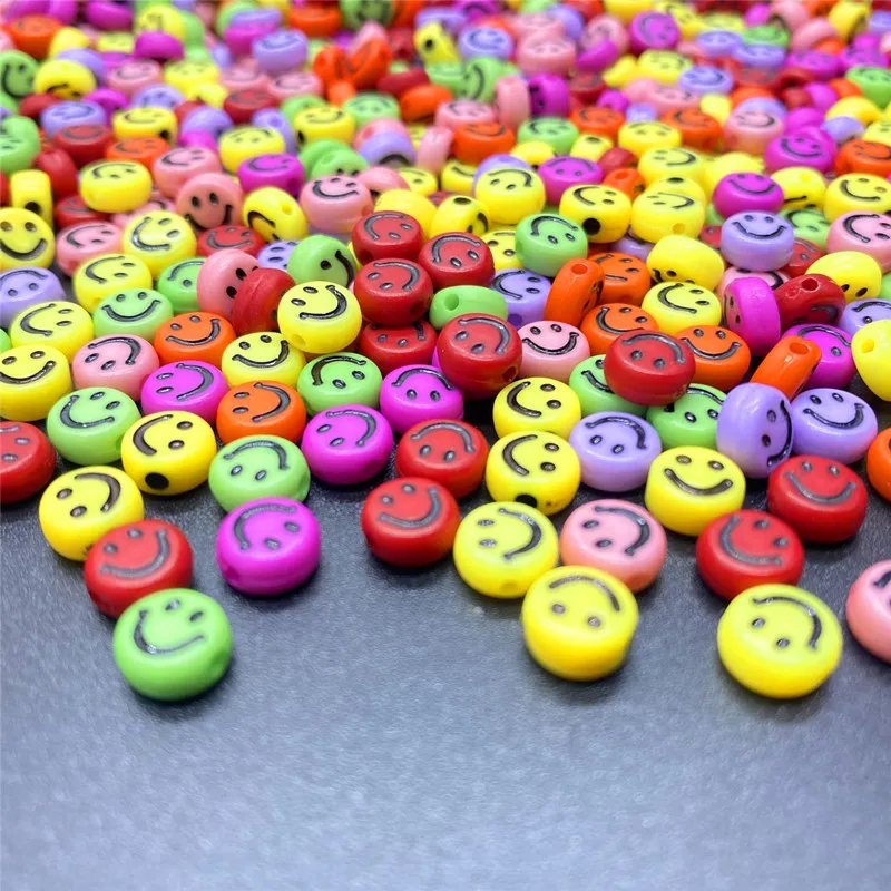 100 шт.лот, 7 мм, овальные акриловые бусины с отверстием, бусины со смайликом для изготовления ювелирных изделий, браслетов-шармов сделай сам, ожерелье