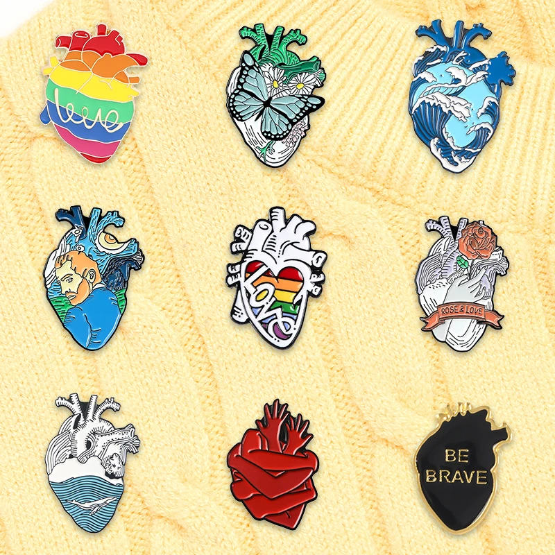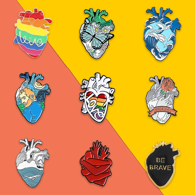 Эмалевые булавки в форме радужного сердца, значок в виде бабочки, розы, нагрудный знак брошь, Ювелирное Украшение, Подарок на юбилей для студентов-медиков и анатомических работников