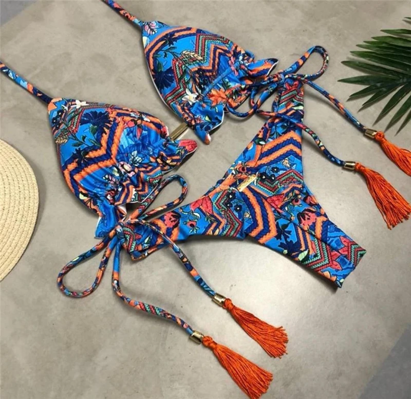 Бикини, женский купальник, 2021, женский сексуальный комплект бикини, купальный костюм с пуш-ап, богемный женский купальный костюм, комплект из 2 предметов