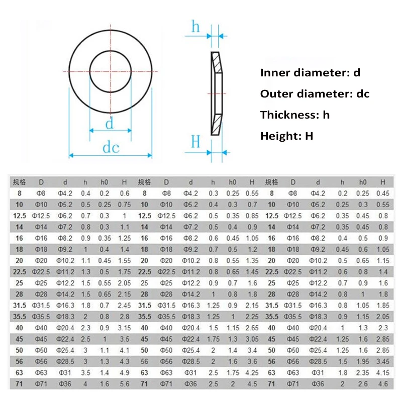 1. Поперечное сечение пружины диска является коническим. Пружина, способная выдерживать осевые нагрузки (статические или переменные).2. Короткий ход, тяжелая нагрузка. Он нуждается в небольшом пространстве, прост в использовании и ремонте.