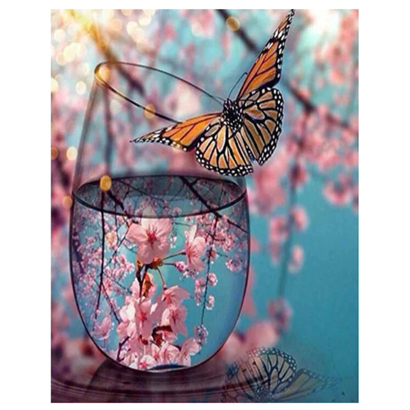 5D Diy круглая Весна персиковый цвет бабочка вышивка кристалл вышивка крестиком Стразы мозаика картина Алмазная картина FC555