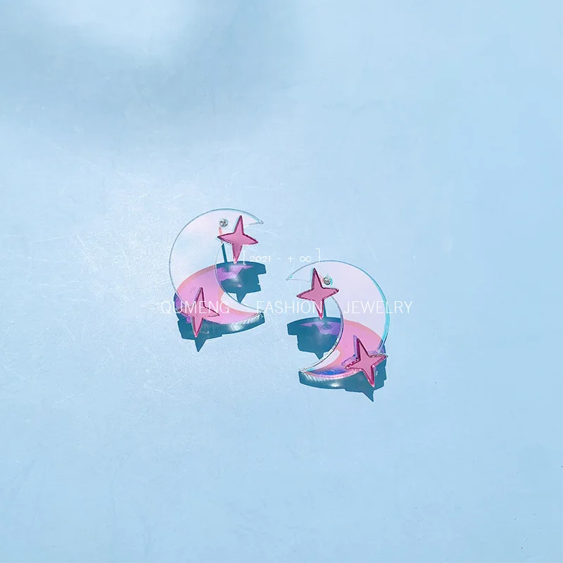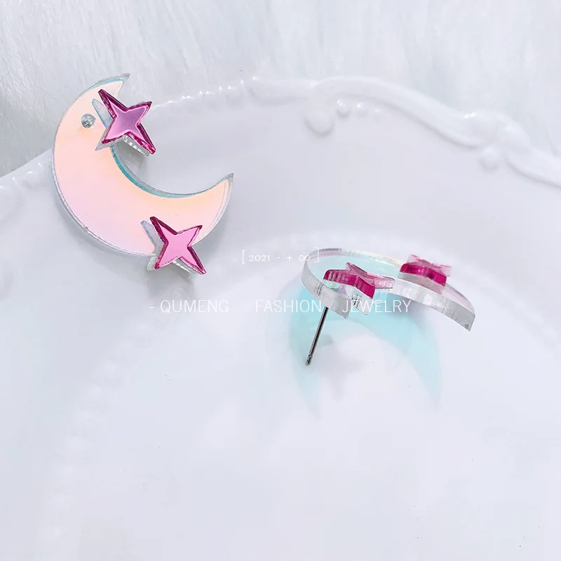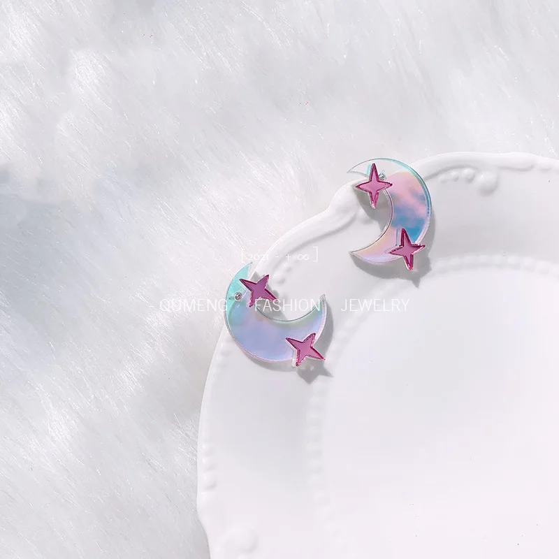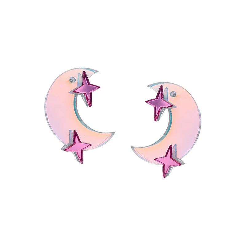 Серьги-гвоздики в форме полумесяца, со звездами, Y2K