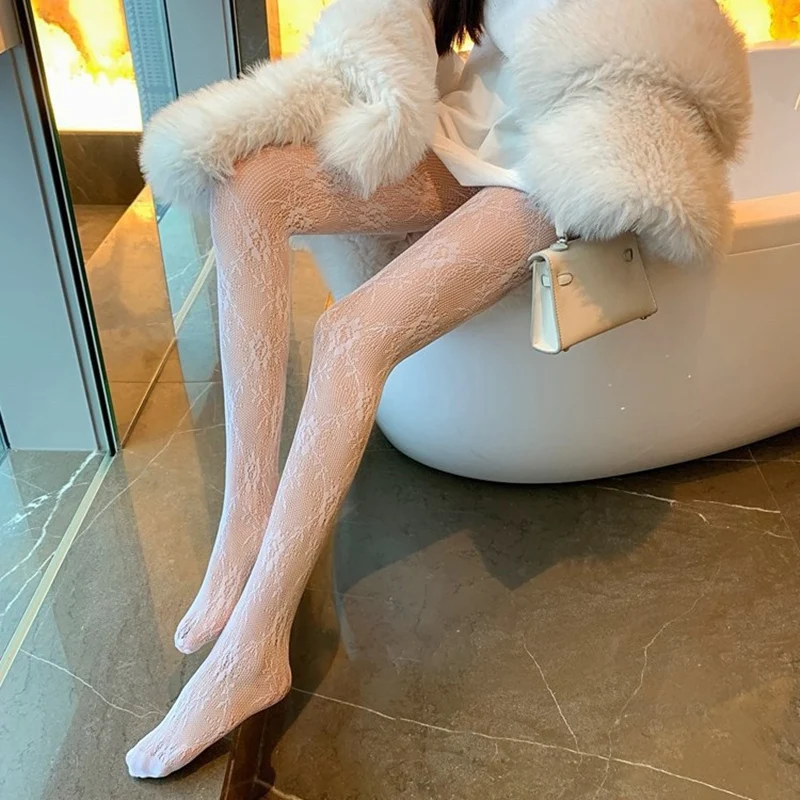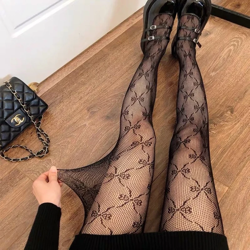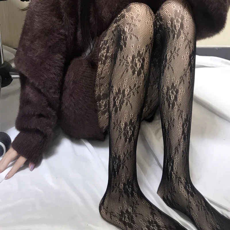 Колготки женские в сеточку с цветочным рисунком, эластичные нейлоновые Чулочные изделия для косплея аниме